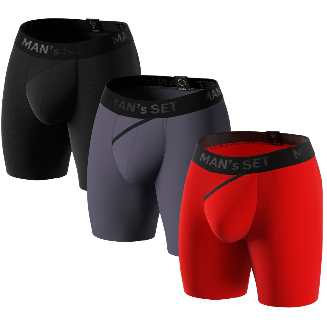 ProActive Soft Boxer Briefs 5.8" 3-Pack, Black/Navy/Red